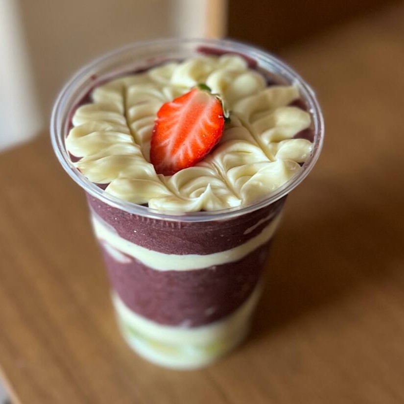 A combinação perfeita dos três sabores mais amados em uma versão irresistível. Açaí cremoso com creme de Ninho aveludado, creme de morango delicadamente doce e finalizado com calda de chocolate e leite condensado. Equilíbrio perfeito entre o doce, o frutado e o intenso. Clássico, cremoso e impossível pedir só uma vez.
