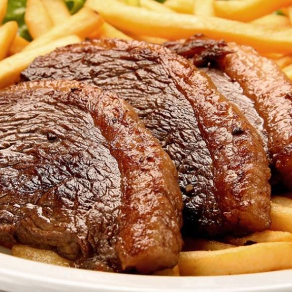ARROZ-FEIJAO-BIFE DE PICANHA SUCULENTA-VINAGRETE-BATATA FRITA -FAROFA