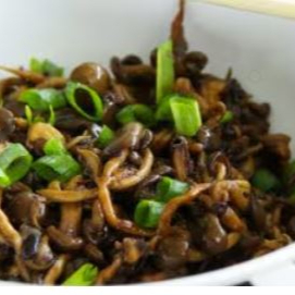 Cogumelos refogados com manteiga e molho de soja
