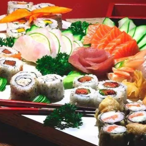 4 sil, 4 mini hot de cove, 8 hot, 8 niguiri, 12 sashimi, 4 uramaki, 4 hossomak, 4 jow de rucula, 2 temaki de 80gr,2 porção de cerviche do chefe 50gr, 1 porção de shimeji 160gr,4 salmão grelhado, 4 lula dore, 4 giozá, 4 rolinho queijo, 4rolinho chocolate (Imagem meramente ilustrativa)