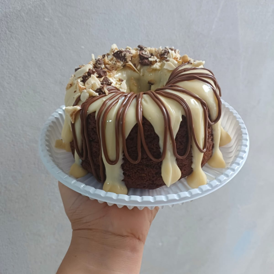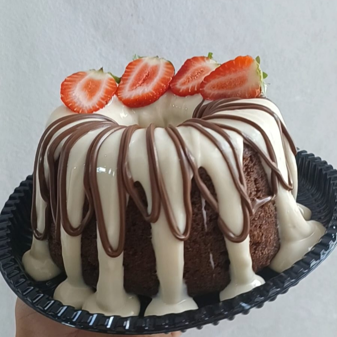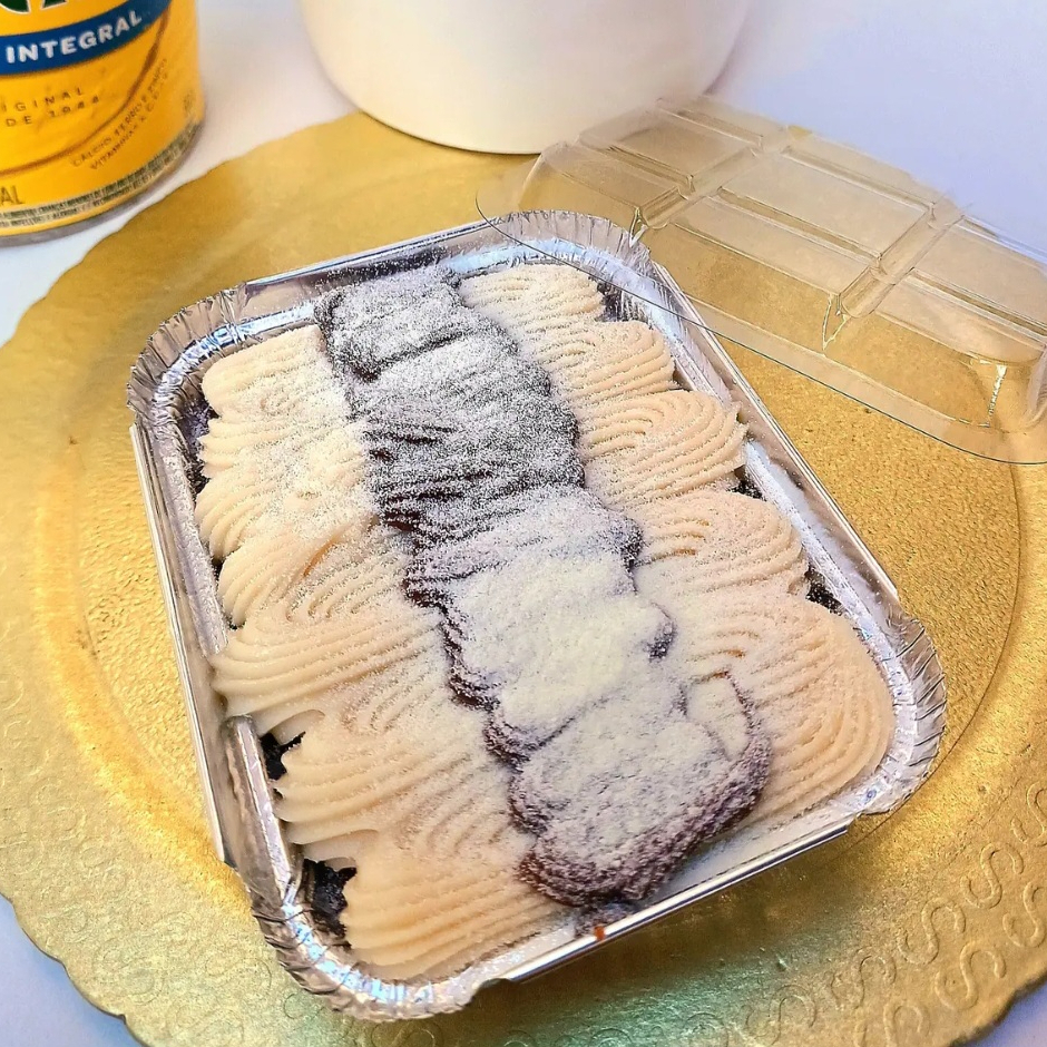 Aquele bolinho gostoso pra comer com um cafezinho ou até com uma coquinha geeelada!!! Massa branca fofinha bem umida com calda especial,coberto com brigadeiro e coco. *.embalagem 220ml. *serve 1 pessoa