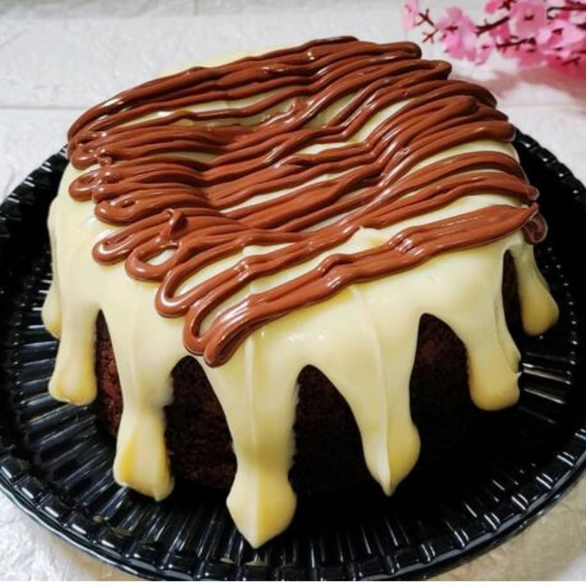 Delioso bolo caseiro com massa fofinha de Cacau 50% com cobertura de brigadeiro de Leite Ninho ,finalizado com fios de Nutella . Perfeito para saborear com um cafezinho ou uma Coca geladinha ; ) *serve média 6 porçoes *forma 16cm