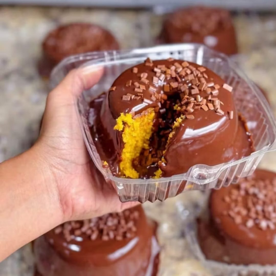 quele bolinho gostoso pra comer com um cafezinho ou até com uma coquinha geeelada!!! Massa fofinha de cacau 50%, bem umida com calda especial,coberta com brigadeiro finalizado com granulado de chocolate ao leite.- *embalagem 220ml. *serve 1 pessoa