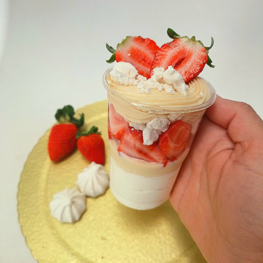 Delicioso copo refrescante,preparado com brigadeiro cremoso de Leite Ninho, mousse de leite ninho,morangos frescos,suspiros!! *copo 250ml *serve 1 pessoa