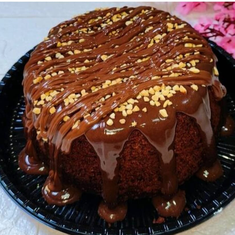 Delioso bolo caseiro com massa fofinha de Cacau 50% com cobertura de brigadeiro de Cacau ,finalizado com fios de Nutella e amendoim. Perfeito para saborear com um cafezinho ou uma Coca geladinha ; ) *serve média 6 porçoes *forma 16cm