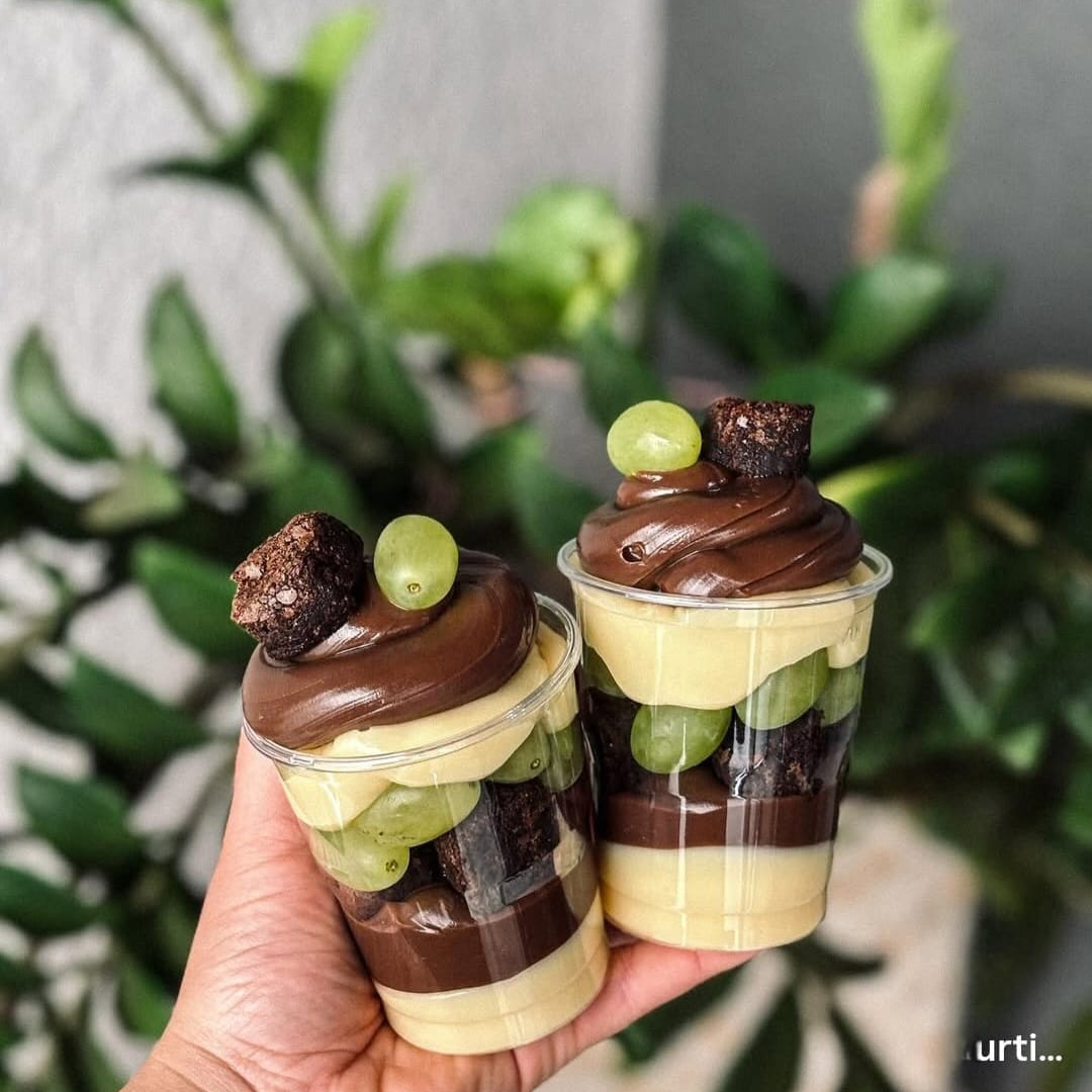 Deliciosa combinação entre brigadeiro cremoso de Cacau 50%,creme 4 leites com chocolate branco, pedacos de brownie euvas verdes docinha sem sementes. (nossos copos são bem recheados) **valor referente a 1 copo