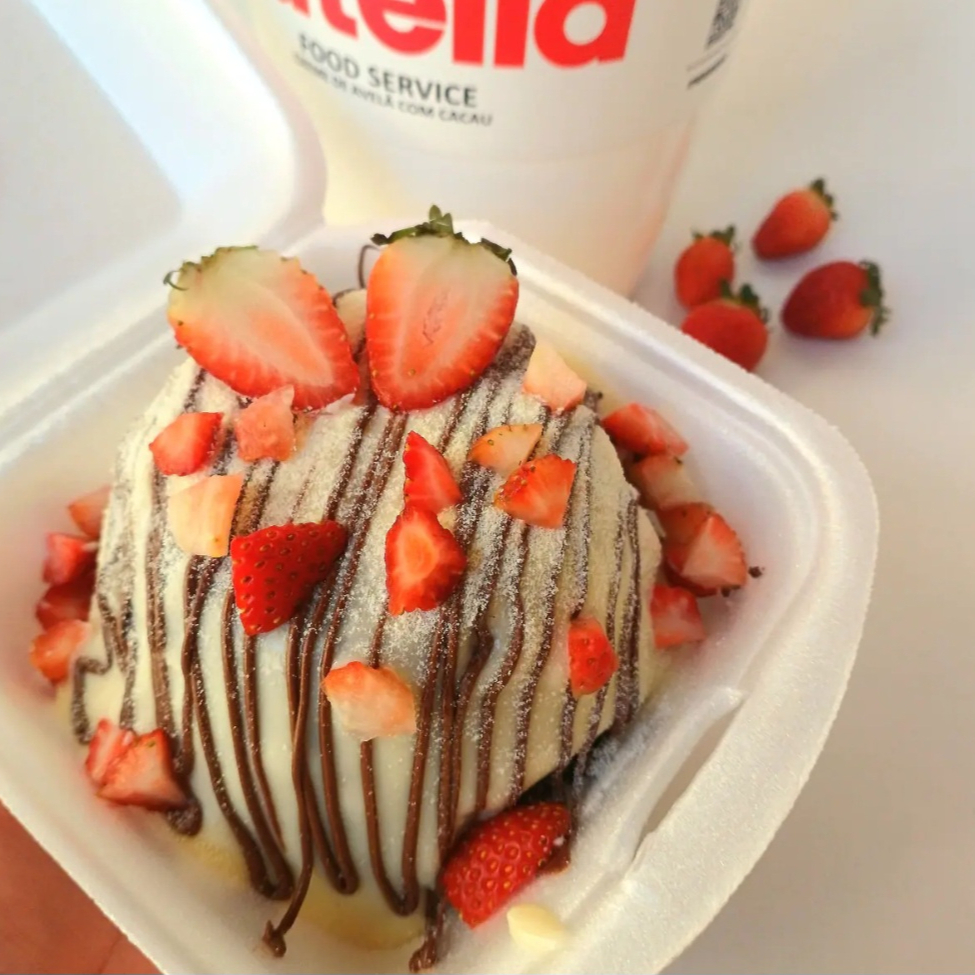 Brownie molhadinho com casquinha crocante,coberto com brigadeiro cremoso de Leite Ninho ,Nutella Original e generosa!! Finalizado com morangos frescos!!