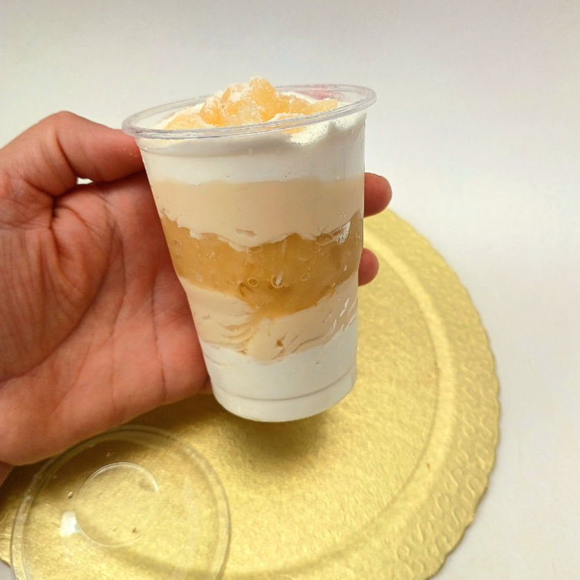 Delicioso copo refrescante,preparado com brigadeiro cremoso de Leite Ninho, mousse de leite ninho,compota artesanal de abacaxi! *copo 250ml *serve 1 pessoa