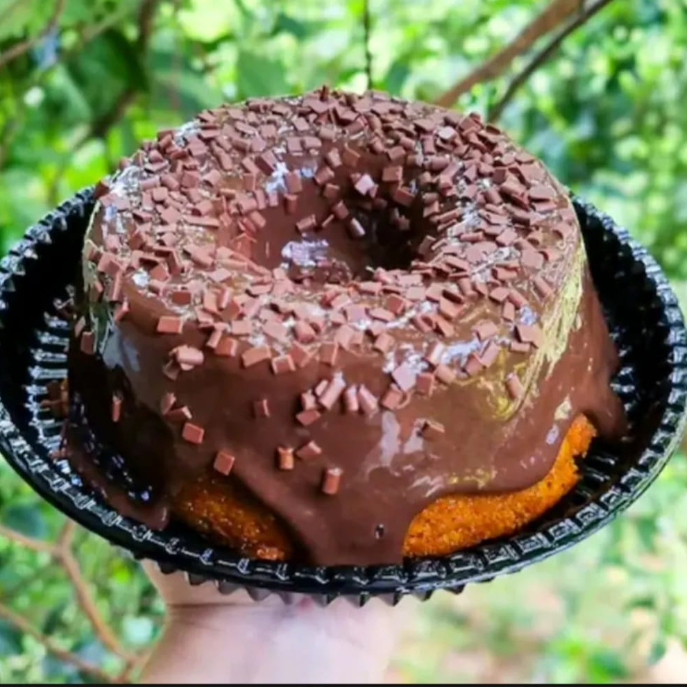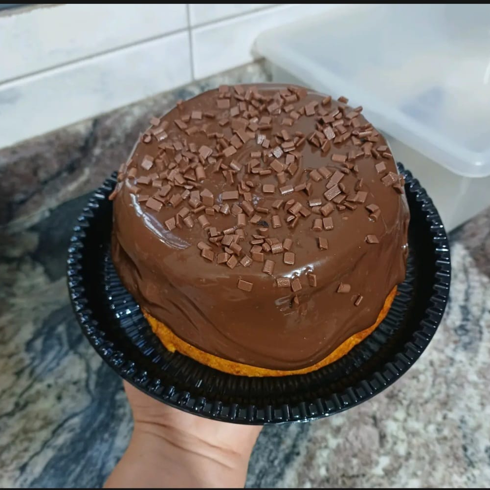 Delioso bolo caseiro com massa fofinha de cenoura com cobertura de brigadeiro de Cacau ,finalizado com granulados de chocolate nobre. Perfeito para saborear com um cafezinho ou uma Coca geladinha ; ) *serve média 6 porçoes *forma 16cm