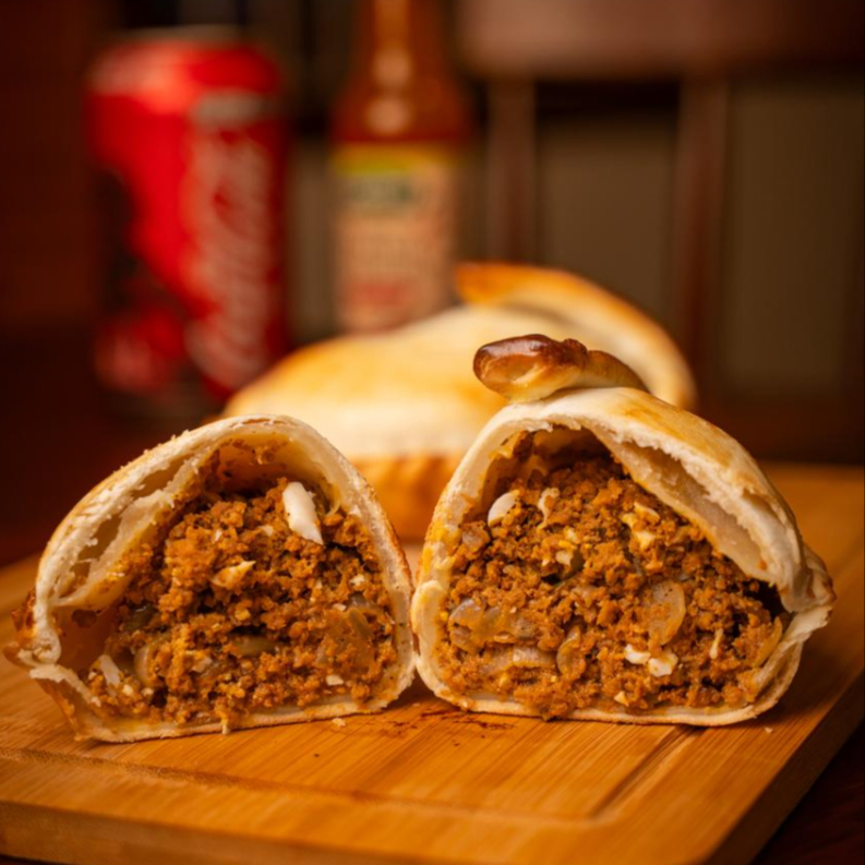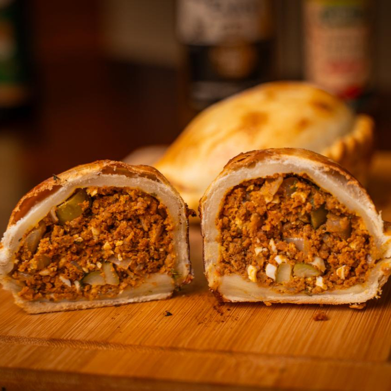 Carne, cebola, pimentão vermelho, pimenta cayene, ovos e azeitonas verdes.