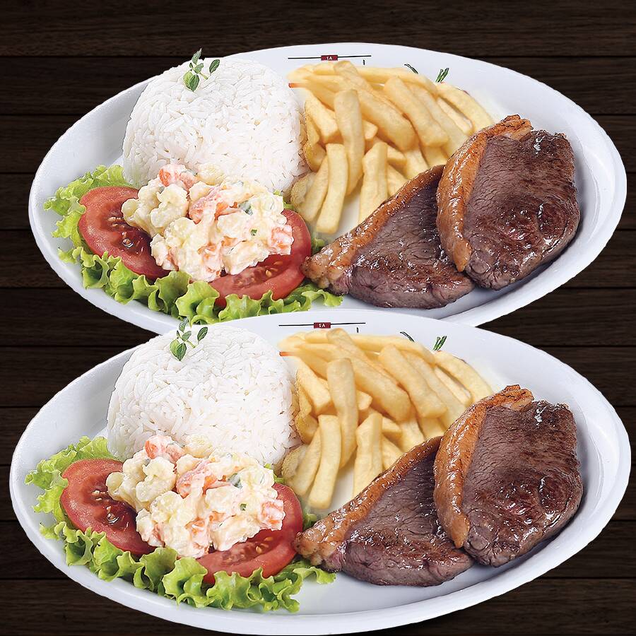 Contra Filé (170g) + Arroz + Feijão + Fritas + Maionese + Salada