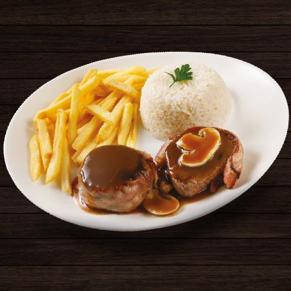 Medalhão De Mignon Ao Molho Madeira (200g) + Arroz + Feijão + Fritas + Bacon