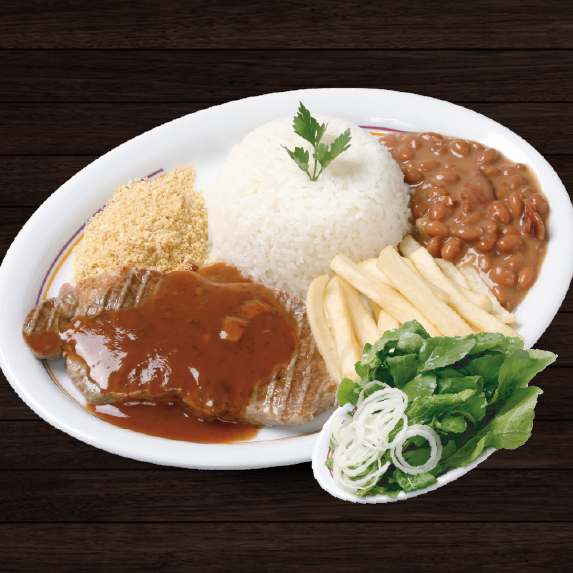 Filé Mignon 180g + Arroz + Feijão + Fritas + Vinagrete + Farofa + Salada