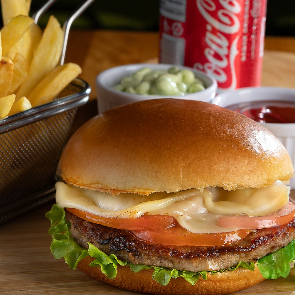 Hambúrguer, presunto e queijo ou cheddar