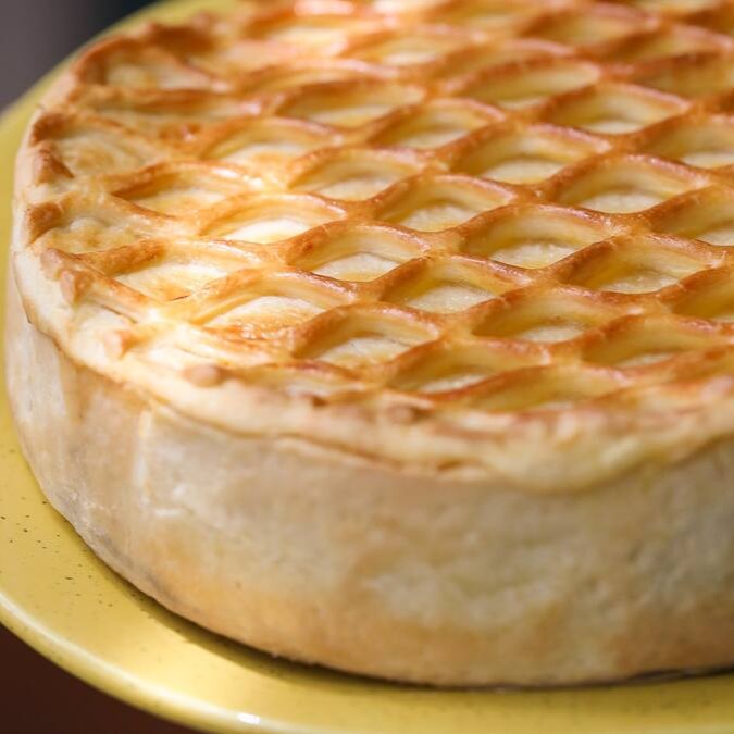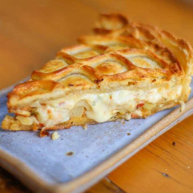 Tradicional quiche de queijo com alho poró