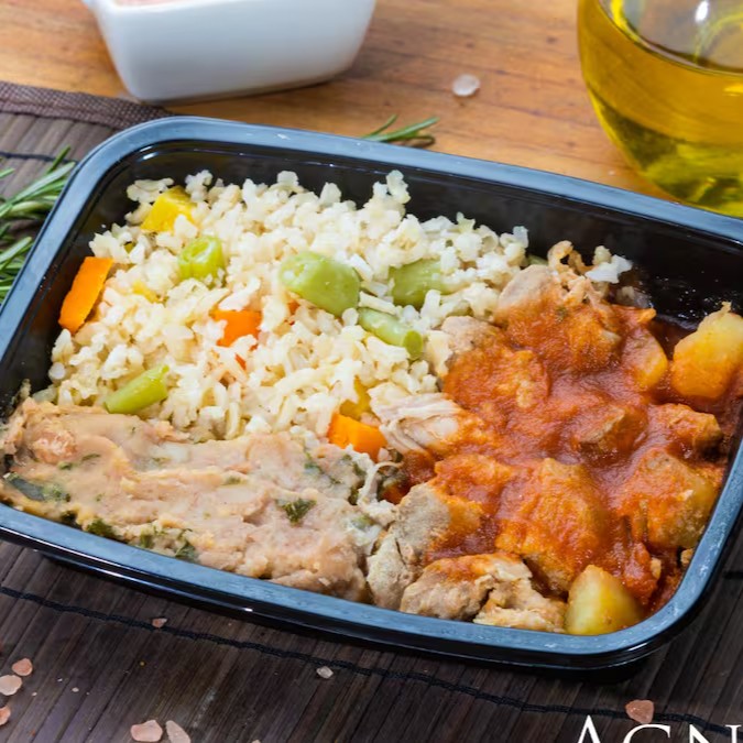 Filé Mignon Suino Ao Barbecue Arroz Integral E Viradinho De Feijão 300g