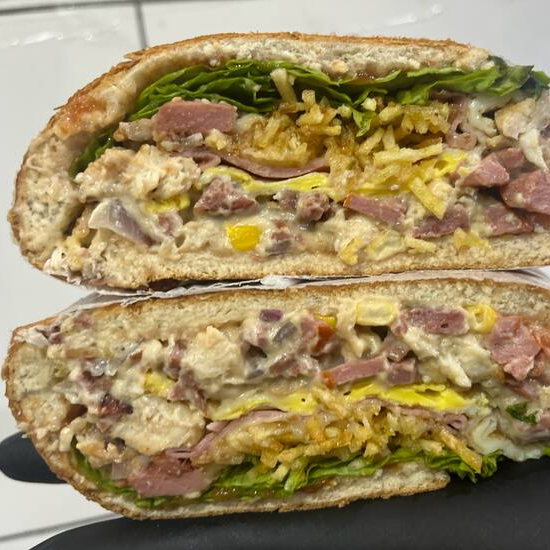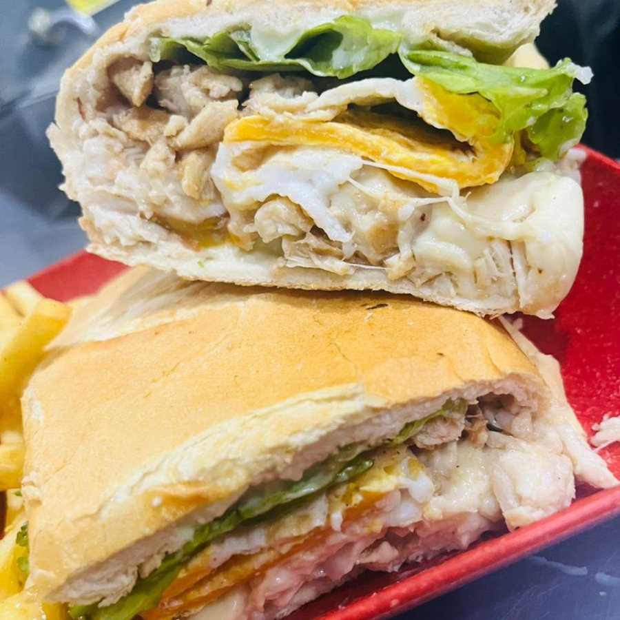 frango, ovo, catupiry original, 3 fatias mussarela, tomate, alface, maionese temperada e tradicional