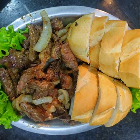 Contra Filé Acebolado Acompanha Pão Francês