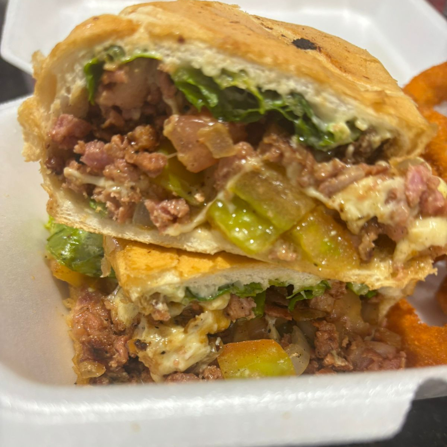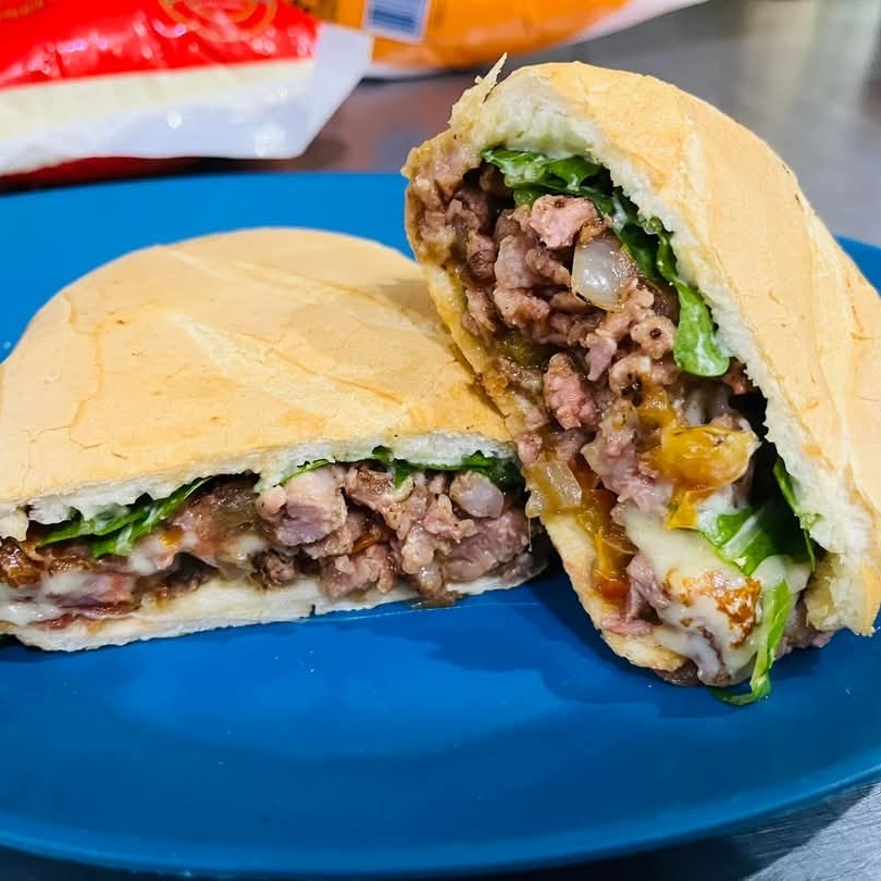 contra-filé, 3 fatias mussarela, vinagrete, alface, maionese temperada e tradicional.