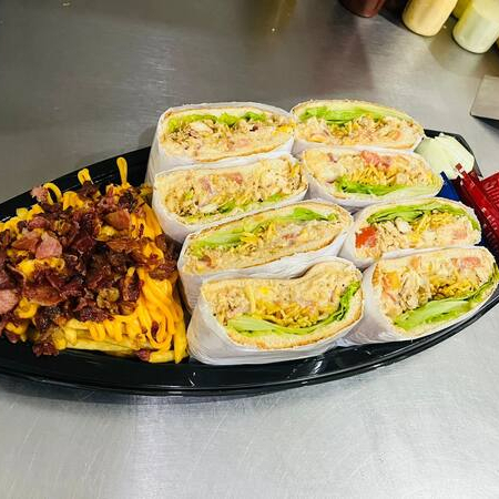 2 x saladas com cheddar+ 1 fritas dupla (500 gr ) batata com cheddar e bacon + 1 kuat 2 litros