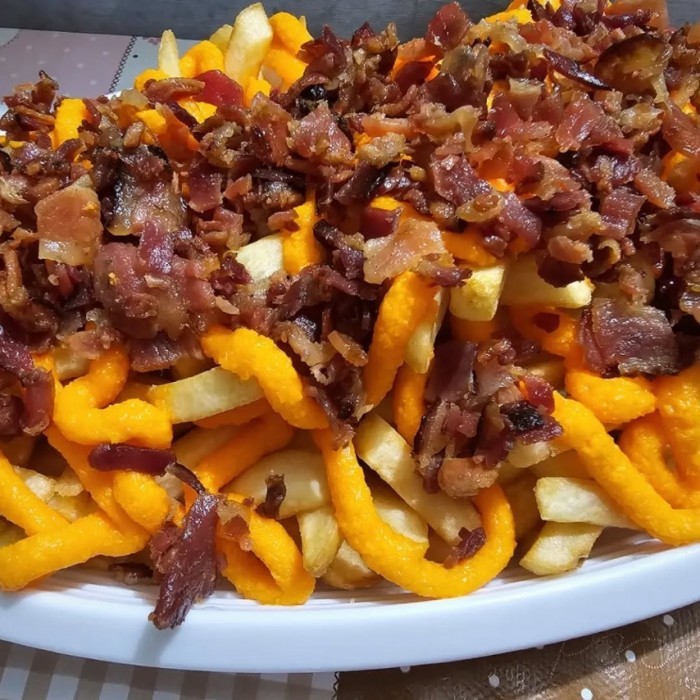 Fritas Com Queijo, Cheddar, Catupiry, Bacon E Calabresa