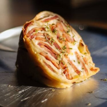 Sem erro! Fatia de pão recheado de calabresa artesanal e muçarela