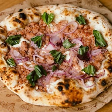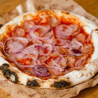 Molho Lastro de tomate, calabresa artesanal defumada e cebola roxa (opcional: muçarela)