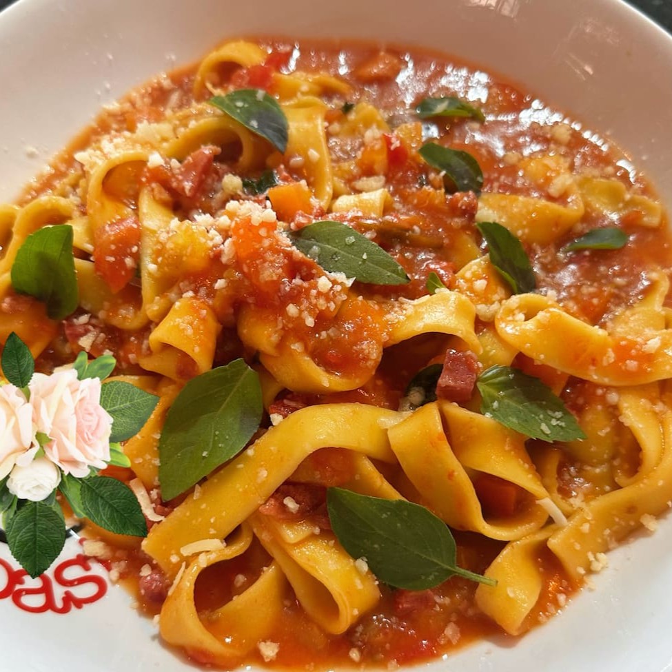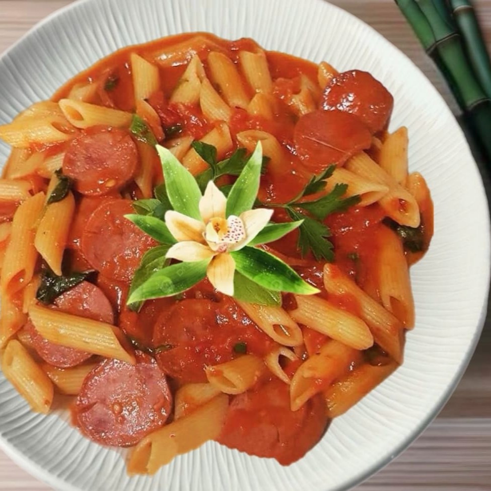 Esta é uma criação saborosa que irá encantar o seu paladar. Ela é servida com Ragu de Linguiça Toscana, com tomates frescos e manjericão que oferece um toque aromático. , A erva-doce e pimenta dedo-de-moça adicionam nuances de sabor. (Você pode solicitar "Sem Pimenta" - Mas a erva doce não é possivel tirar.) 1 kg de muito sabor e satisfação.