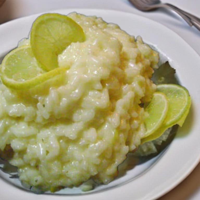 Delicioso Risoto de Queijo Parmesão amanteigado com um toque de suco natural de limão que traz um frescor maravilhoso e citrico. Finalizado com raspas de limão.