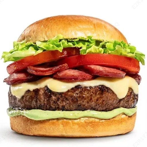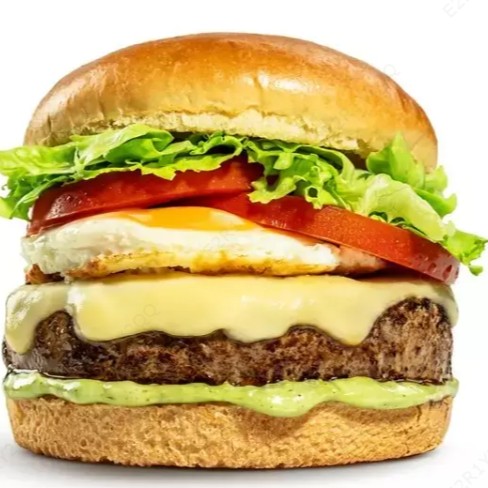 Pão Brioche, Hambúrguer Artesanal de Costela, Ovo, Bacon, Queijo, Calabresa, Alface, Tomate, Cebola Roxa e Maionese Caseira Temperada.