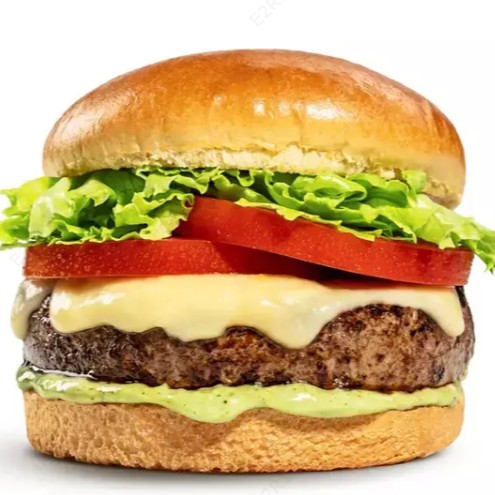Pão Brioche, Hambúrguer Artesanal ,queijo ,Alface, Tomate, Cebola Roxa e Maionese Caseira Temperada.