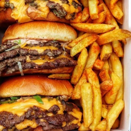 Pão Brioche, 2x Hambúrgueres Artesanal de Costela, Cheddar Melt, 4x Bacon e Maionese Caseira Temperada.