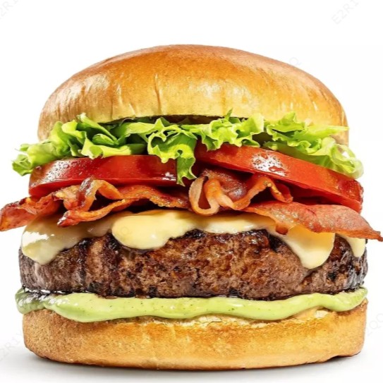 Pão Brioche, Hambúrguer Artesanal de Costela, Queijo, 4x Bacon, Alface, Tomate, Cebola Roxa e Maionese Caseira Temperada.