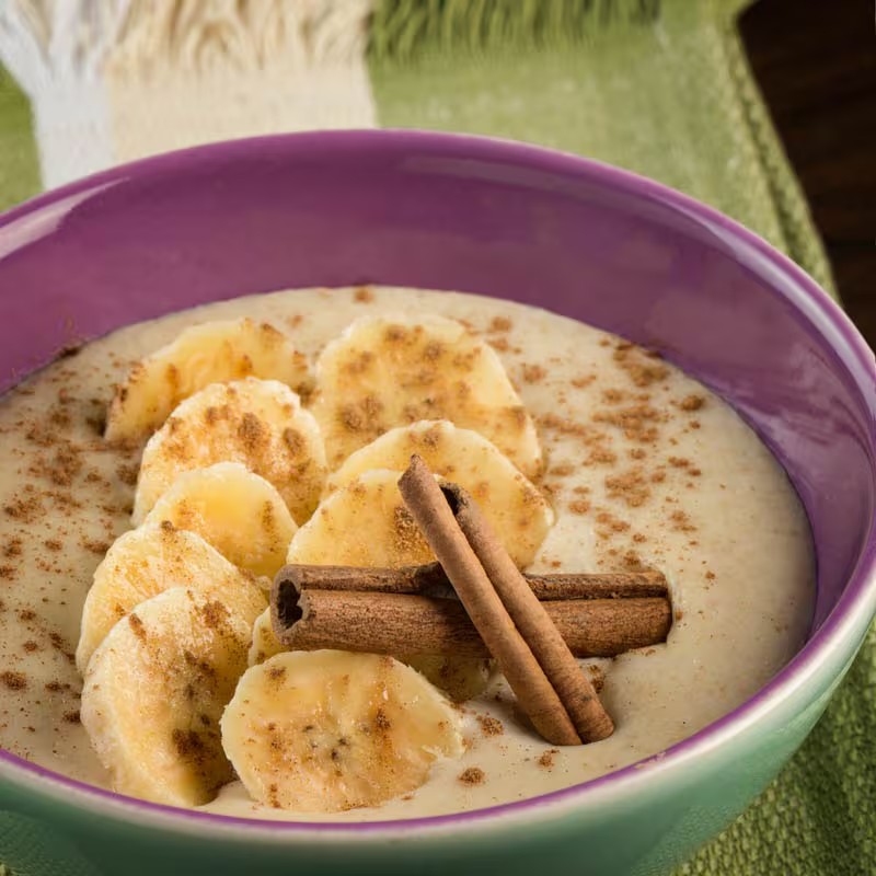 Servido com banana e canela.