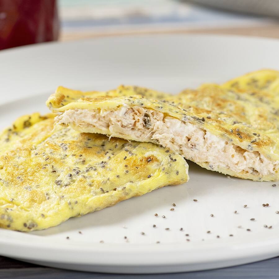 Tapioca, ovo e chia. Escolha o recheio de sua preferência. 155g