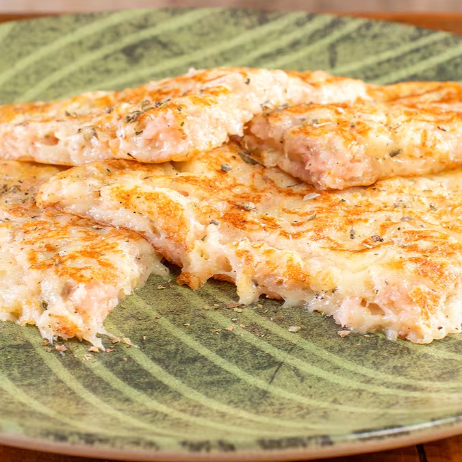 Pão de queijo de frigideira recheado com peito de peru e orégano (Sem Glúten/Contém Lactose)