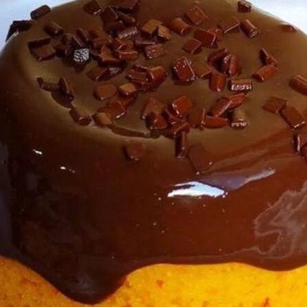 Massa caseira de Cenoura fofinha com gotas de chocolate e cobertura de chocolate (imagem ilustrativa)