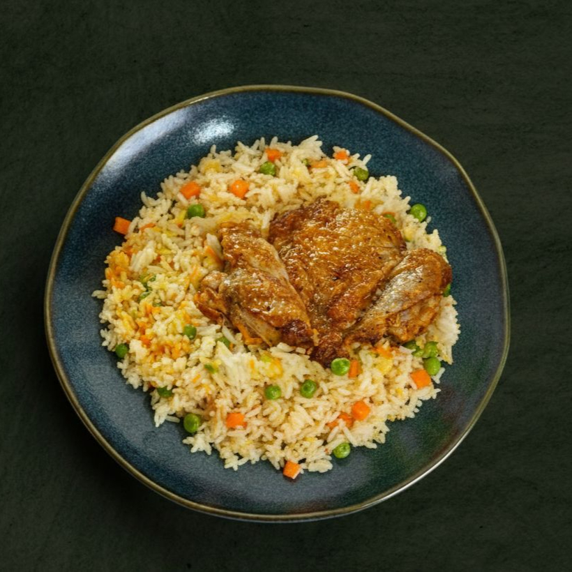 Nosso suculento prato apresenta coxa e sobrecoxa desossada grelhada. Acompanha arroz branco à grega, preparado com batata inglesa, cenoura e ervilha. Temperado com um blend aromático de páprica doce, alho, cebola, lemon pepper, cúrcuma, azeite e sal rosa. Serve 1 pessoa (300g)