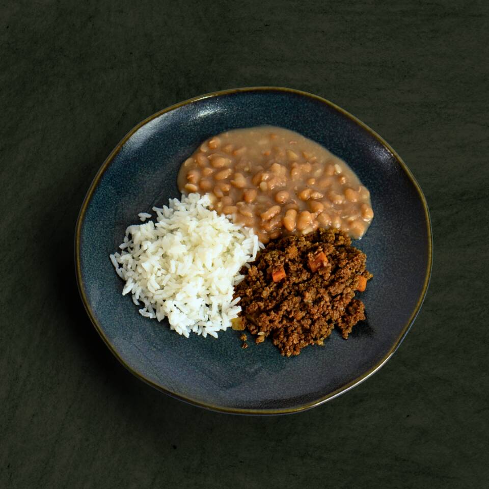Carne Moída Com Legumes, Arroz E Feijão