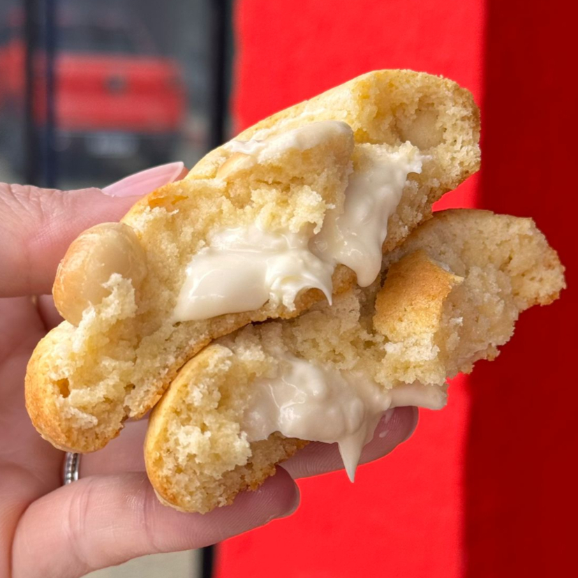 Imagine a combinação perfeita entre o nosso cookie quentinho, macio e recheado, com casquinha levemente crocante e interior aerado, e o nosso soft cremoso, leve e incrivelmente aveludado.