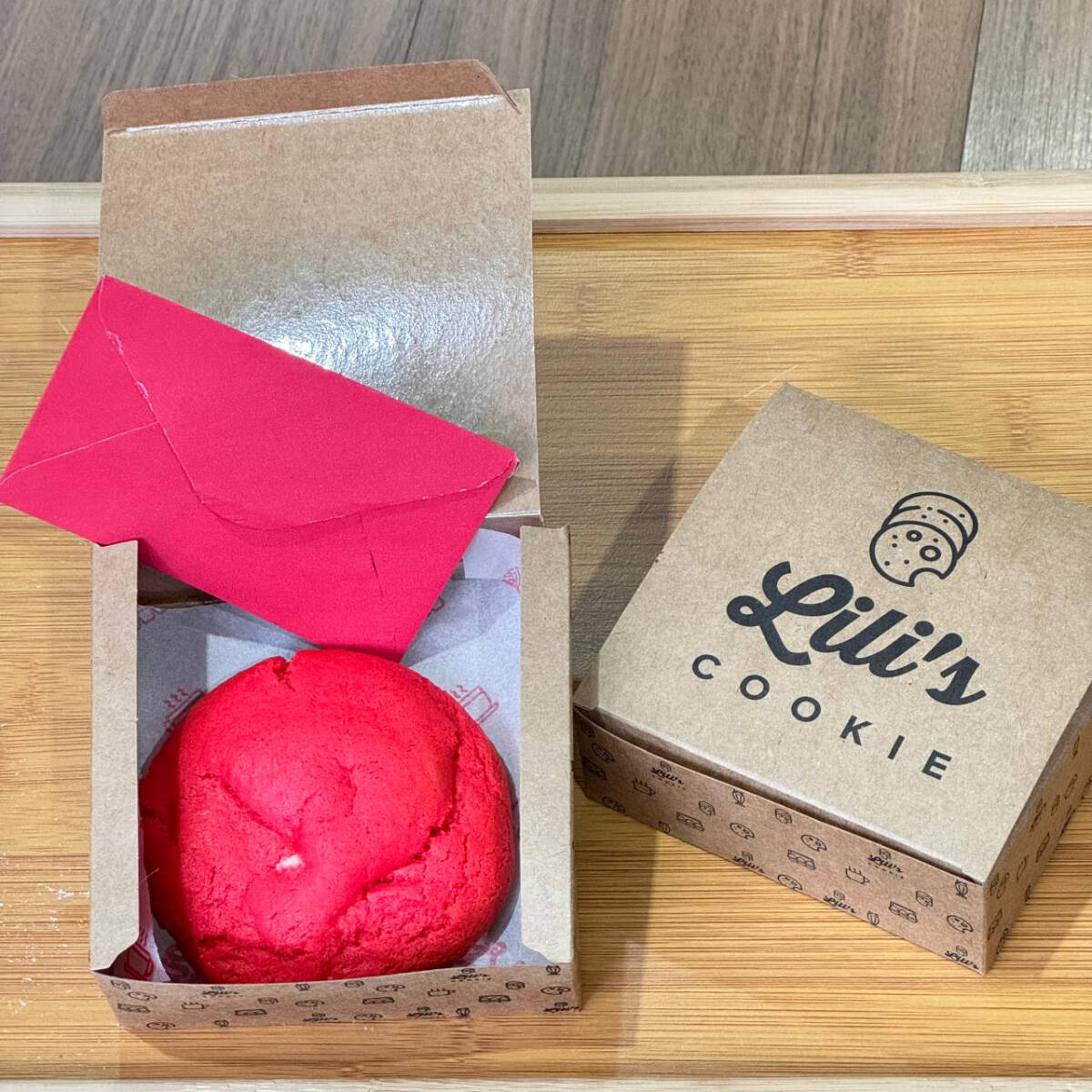 Você poderá escolher o sabor do cookie de dentro da caixinha.