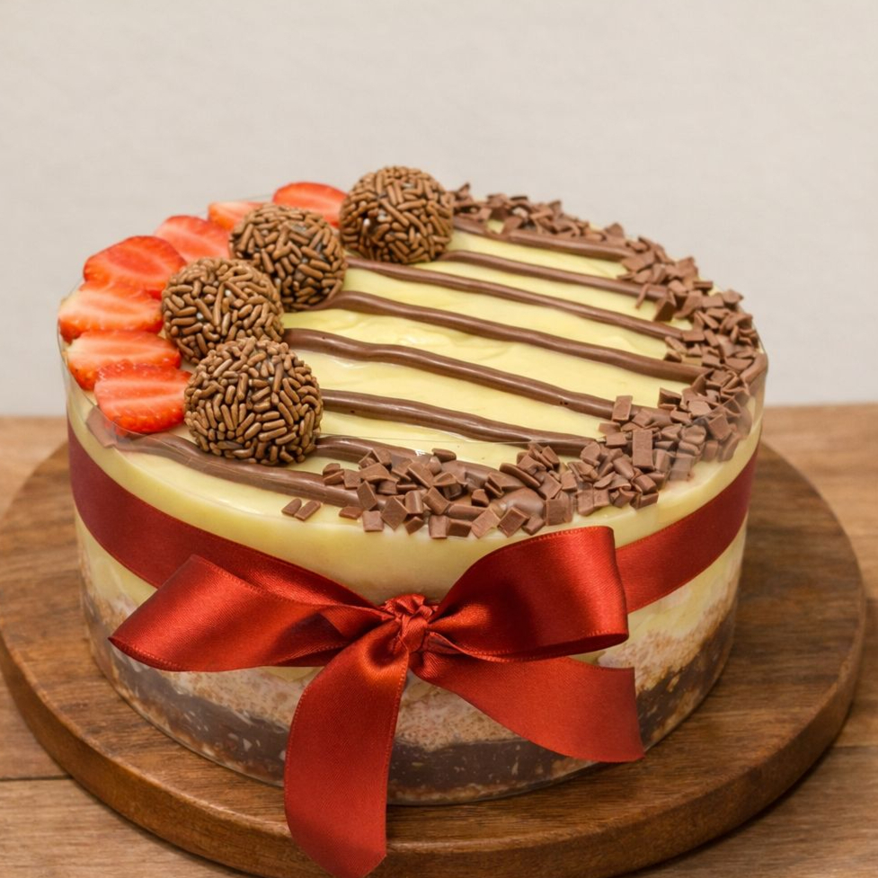 Massa intensa de chocolate com cobertura cremosa de brigadeiro artesanal. Sabor marcante e irresistível!”
