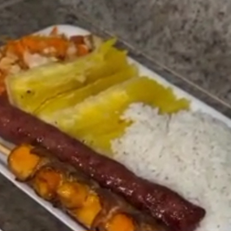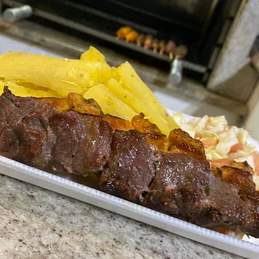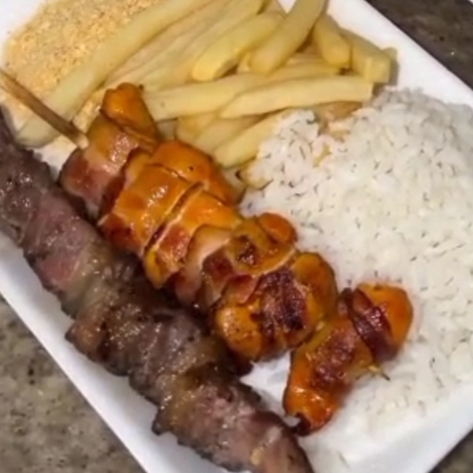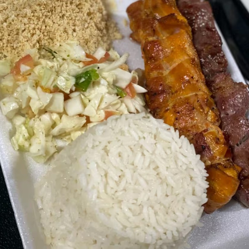Arroz, salada, farofa e 2 espetos a sua escolha.