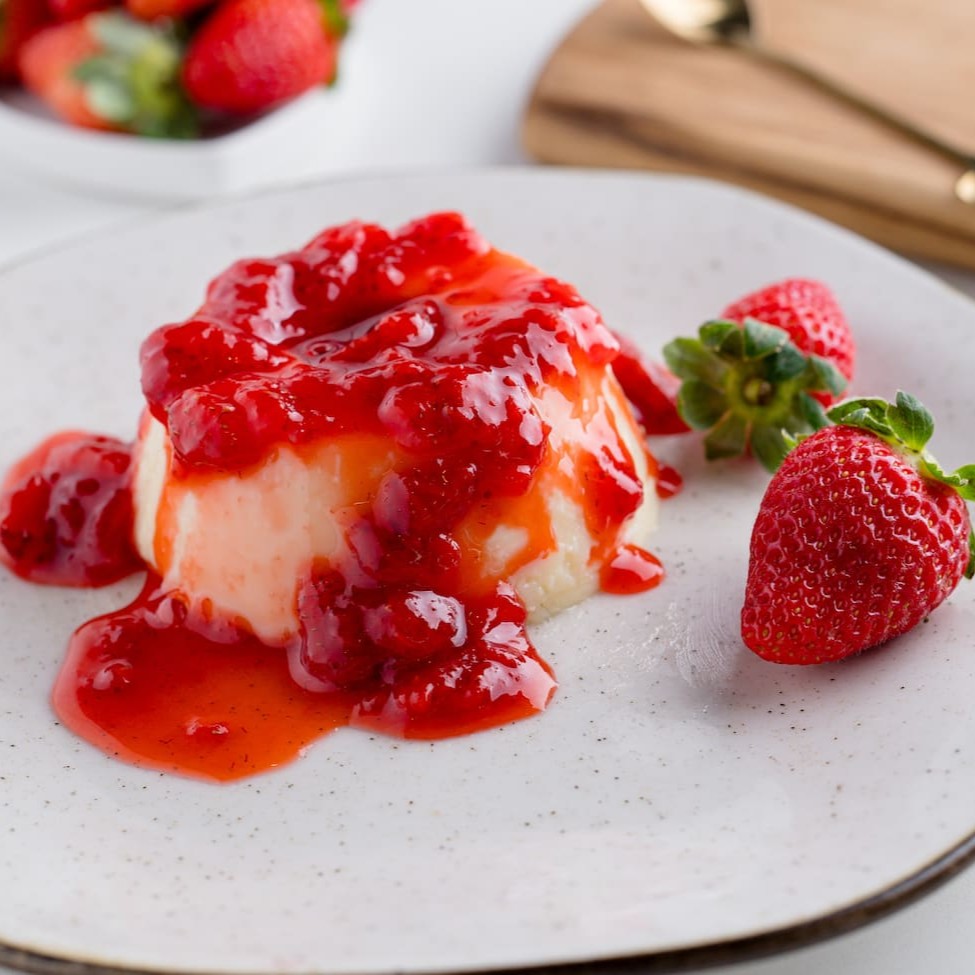 Apresentamos nosso luxuoso Pudim de Chocolate Branco com Geleia de Morango, integrante da categoria Mini Pudins de 150g. Este pudim, verdadeiramente indulgente, é meticulosamente preparado com chocolate branco de altíssima qualidade, proporcionando um sabor rico, sofisticado e incomparável. Seu deleite é intensificado por uma generosa porção de geleia de morango artesanal, cuja vivacidade e frescor contrastam maravilhosamente com a cremosidade do chocolate. Cada garfada é uma promessa de uma experiência culinária inesquecível, uma verdadeira festa para o seu paladar. Desfrute!