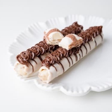 Uma deliciosa novidade. Imagine um canudo crocante, banhado de chocolate meio amargo. Recheio cremoso de brigadeiro de Ferrero Roche, uma combinação perfeita. E para finalizar, uma generosa camada de Nutella, doçura extra e elegante. È de se deliciar a cada mordida.