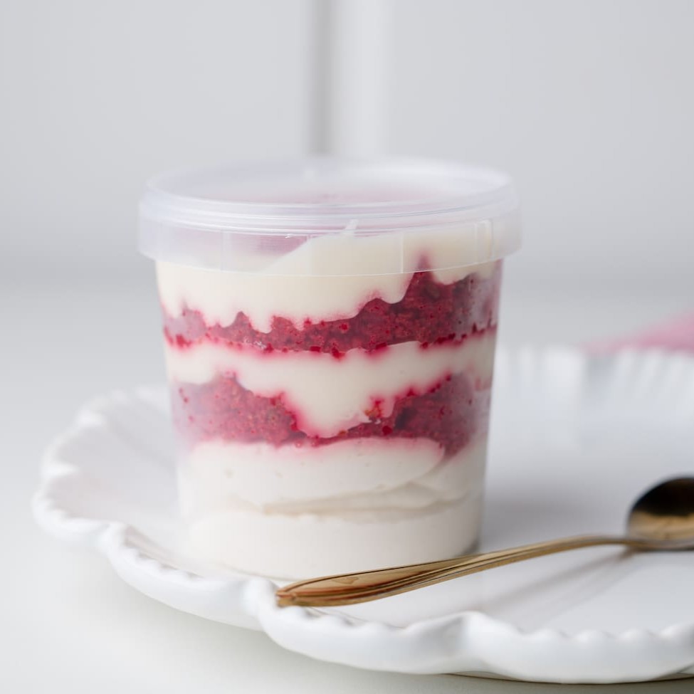 Uma das mais pedidas. Camadas de Bolo Amanteigado Red Velvet, Mousse de Cream Cheese, Brigadeiro Branco e Mousse de leite em pó.