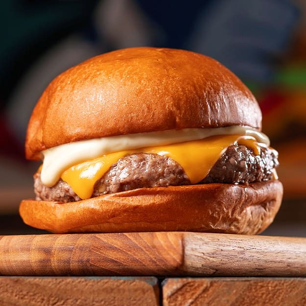 Hambúrguer bovino de 90g temperado com nosso dry rub, queijo cheddar, maionese clássica no pão brioche.