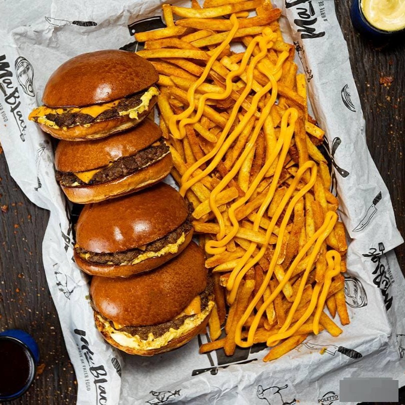 4 smash burgers à sua escolha + 500g de batata frita com cheddar. (peso da batata in natura)