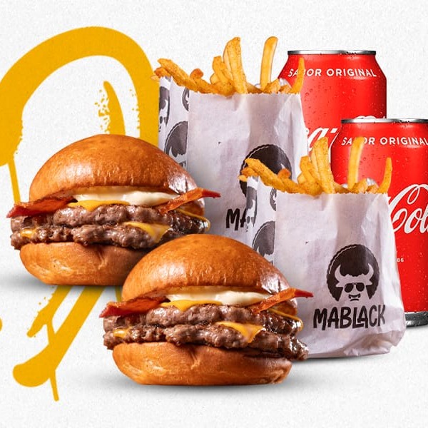 Super combo para dividir com a galera, aqui tem pizza e burger a la vonté! 1 Pizza Grande (sabores selecionados) + 2 Smashs simples e você Ganha (Grátis) uma batata frita Surecrisp 250g com o Nosso Rub <3. É muita oferta boa, só aqui na Mablack