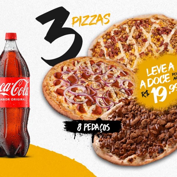 Super combo oferta para você: Pizza pra todo mundo! Levando 2 pizzas grandes + 1 refri 2l a pizza doce de Brigadeiro sai por apenas + R$ 19,99 - É muuuuuito bom <3